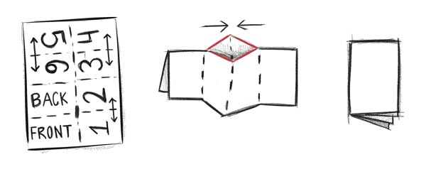 Step Three: Unfold the paper and fold it the long way so the cut portion is on the edge, then push the sides of the paper in so the cut closes to create an “X” shape. Fold the pieces together to form a small booklet. Now you’re ready to make your zine, pick a topic, or just make some fun art.